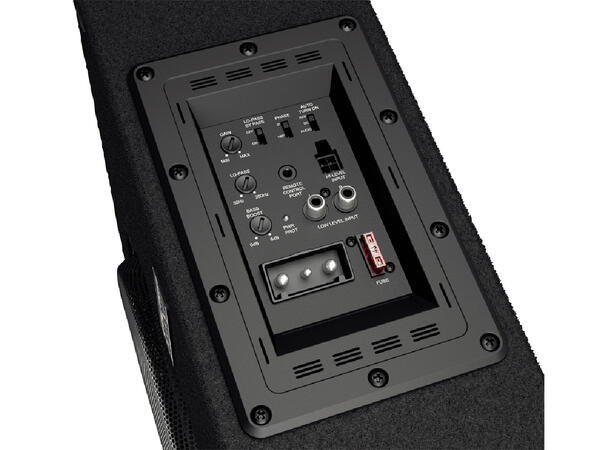 Høynivåinngangen med flerpolig kontakt letter integrasjonen med OEM-lydsystemer, mens lavnivåinngangen på RCA er dedikert til tilkoblingen med ettermarkedskilder. Subwooferens automatiske på / av-funksjon ART (automatisk) kan konfigureres for å styres av kildeens signal, ved spenningsvariasjon på høynivåinngangen eller av lydsignalet på begge innganger. Fasekontroll (0 - 180 °) kompletterer enheten.