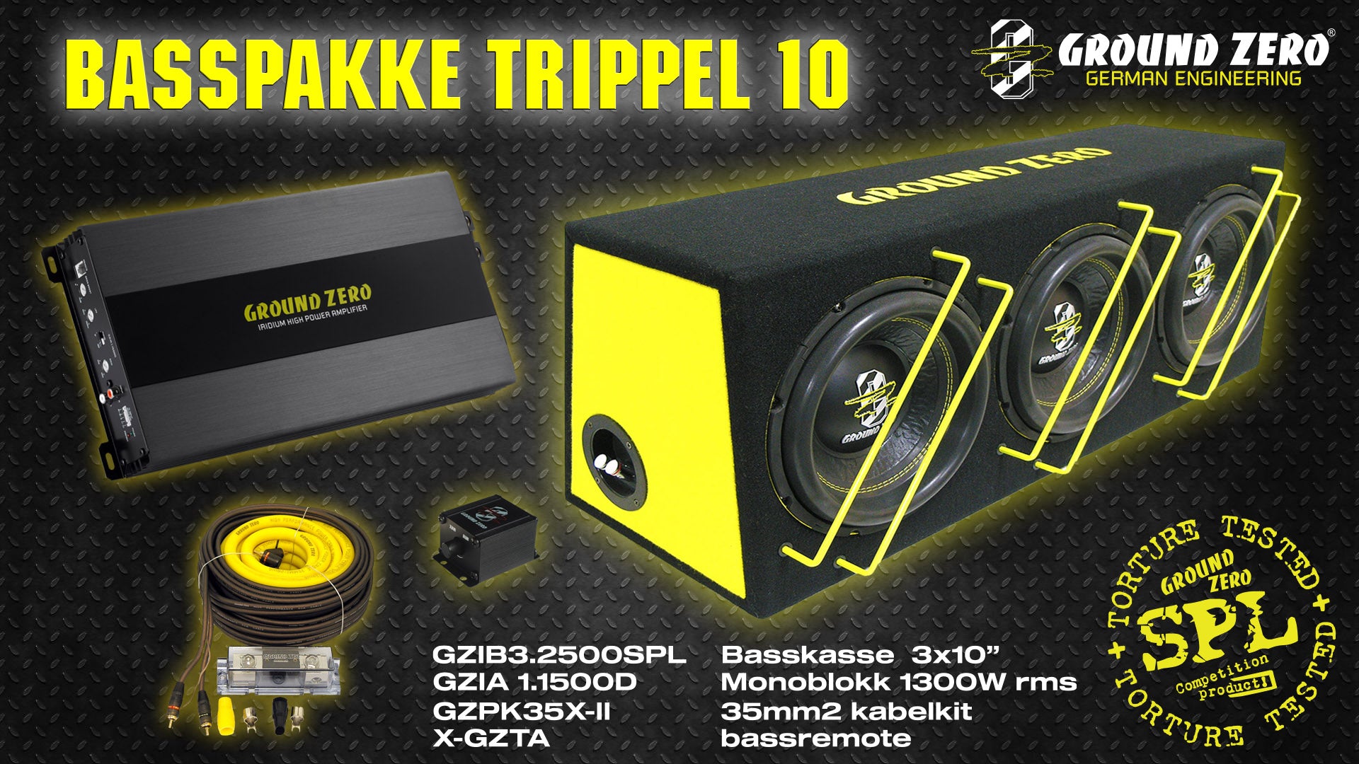 Ground Zero Trippel 10" Basspakke 3x10" basskasse + forsterker + kabler