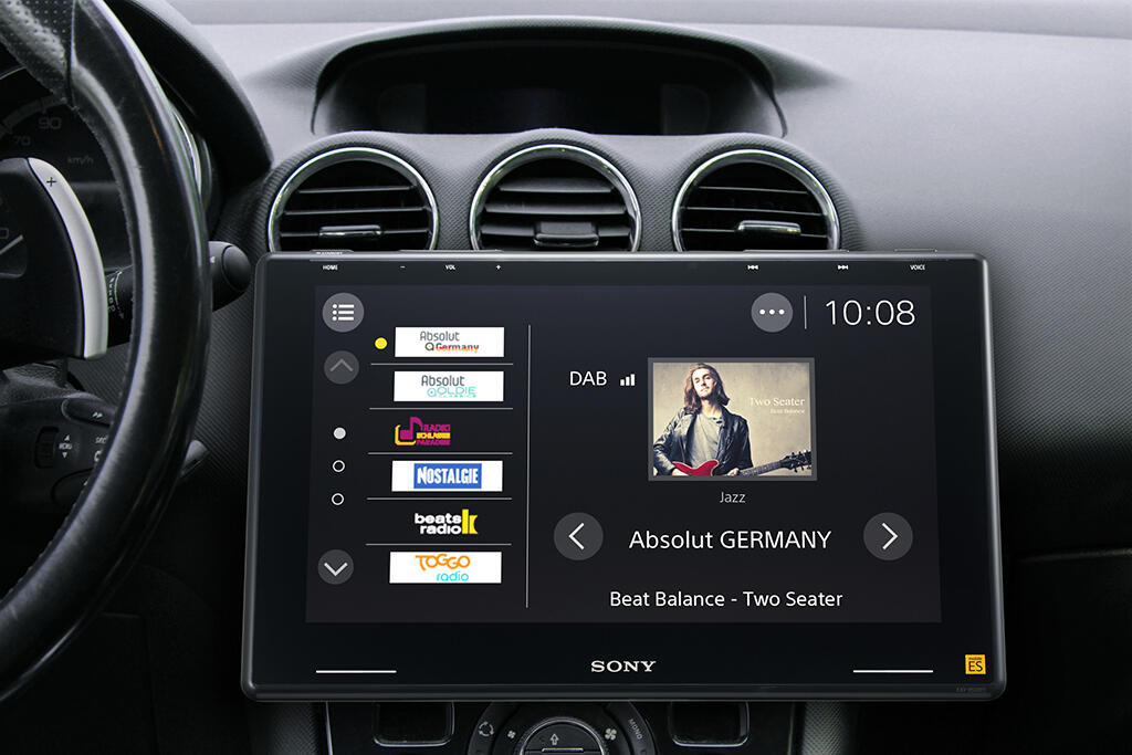 Sony 1-DIN Mediaspiller med 10,1" kapasitiv floating touchskjerm DAB+, USB, Bluetooth og forsterker