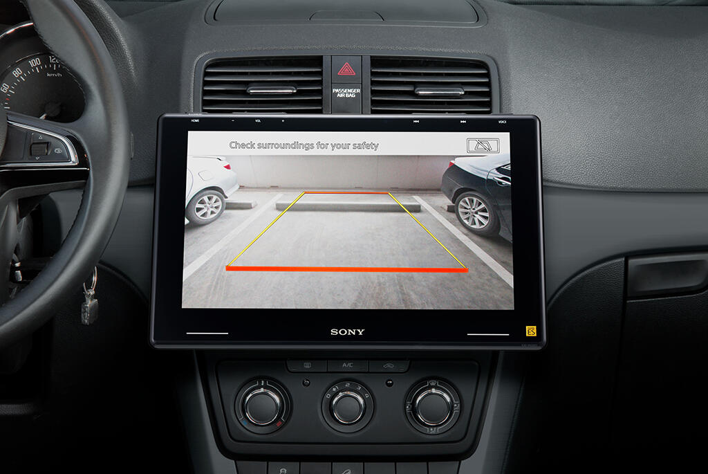 Har du installert et kamera bak på bilen? Bruk justerbare hjelpelinjer som hjelper deg med å rygge trygt.