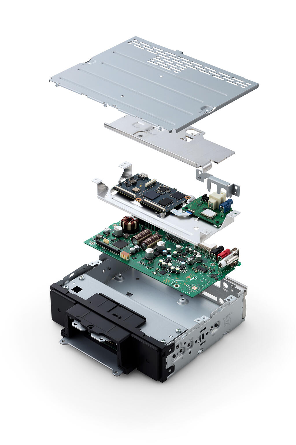 På tross av sin dobbel-DIN-skjerm er det bakre chassiset mye mindre enn vanlige dobbel-DIN-enheter. Dette gjør monteringen mye enklere og gir deg god plass til kabler og annet tilbehør i rommet bak skjermen.