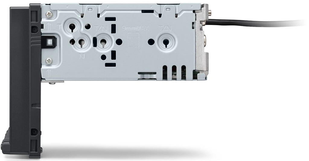 På tross av sin dobbel-DIN-skjerm er det bakre chassiset mye mindre enn vanlige dobbel-DIN-enheter. Dette gjør monteringen mye enklere og gir deg god plass til kabler og annet tilbehør i rommet bak skjermen.