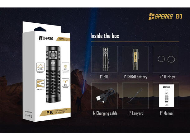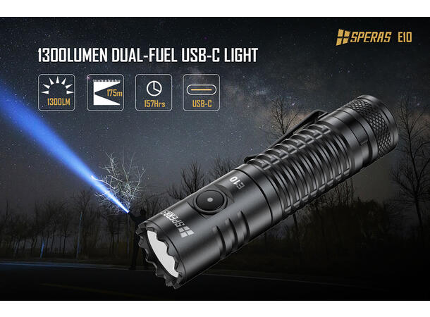 Speras E10 lommelykt 1300lm / 175 meter kastelengde