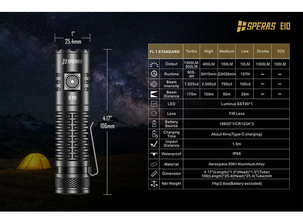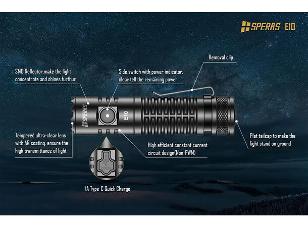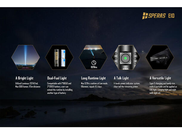 Speras E10 er en multifunksjonell lommelykt spesielt designet for daglig bruk.
