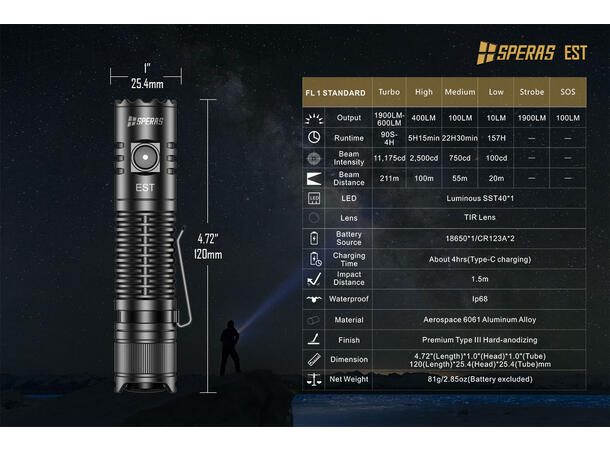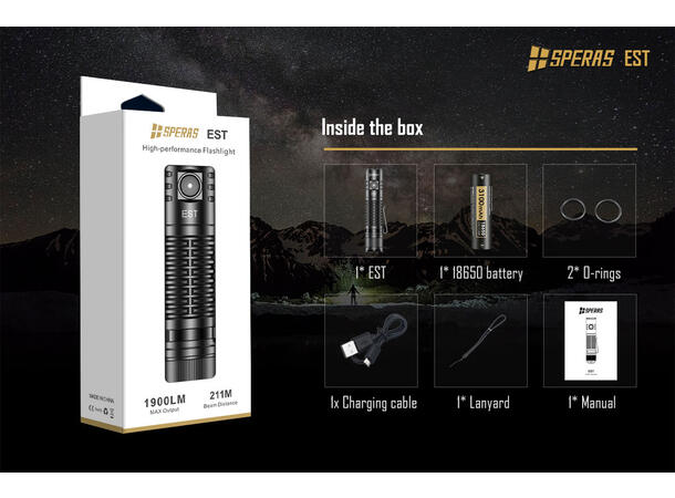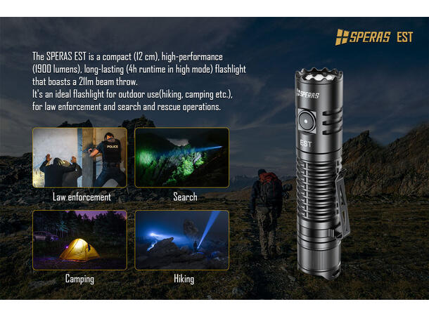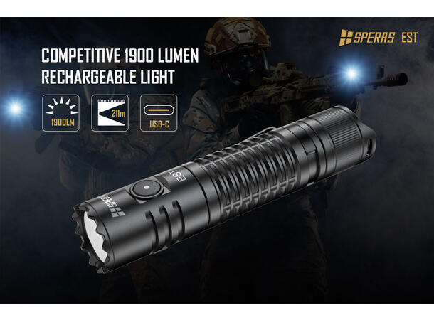 Speras EST lommelykt 1900lm / 211 meter kastelengde
