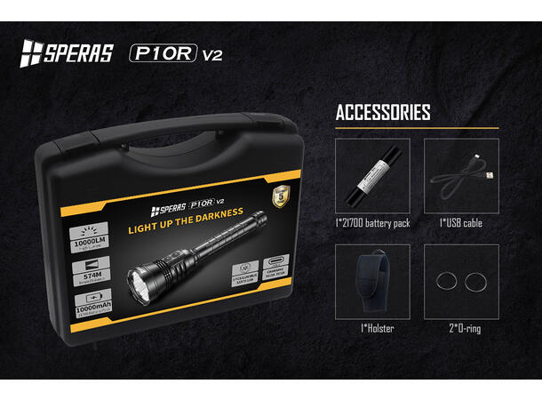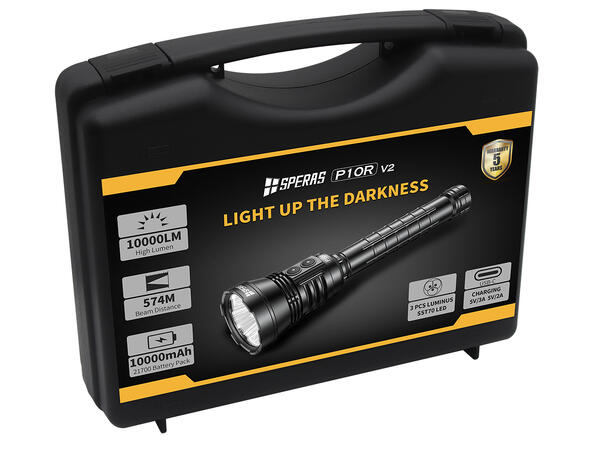 Speras P10Rv2 lykt i praktisk koffert 10.000lm / 574 meter kastelengde