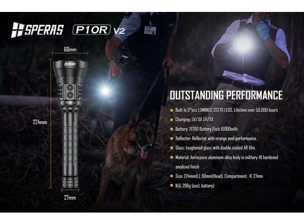 Speras P10Rv2 med fantastiske 10.000lm, perfekt for ettersøk og friluftsliv/jakt