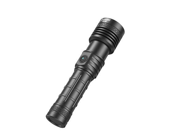 Liten og kompakt lommelykt med kraftig lysstråle som når hele 211 meter på maks styrke.