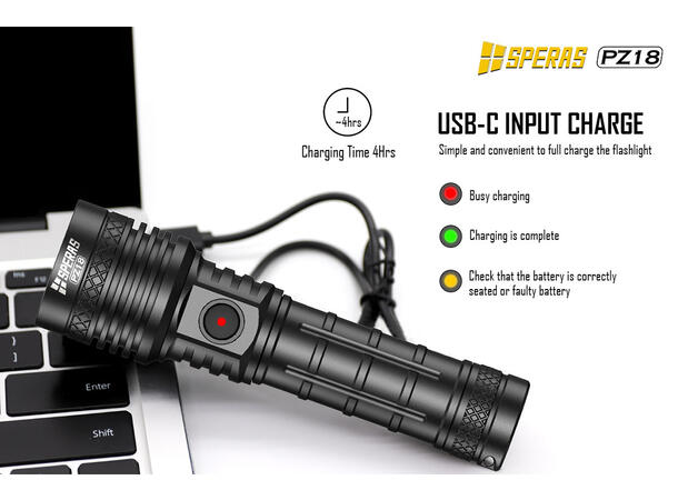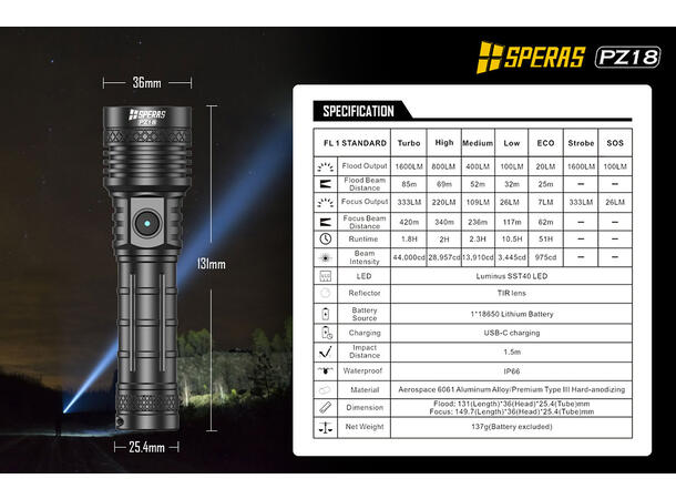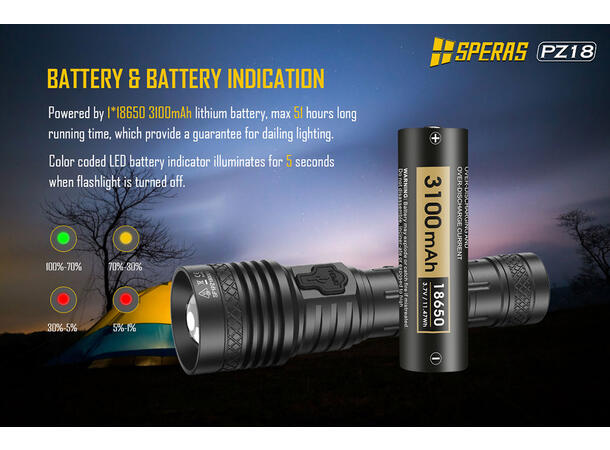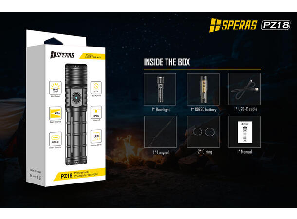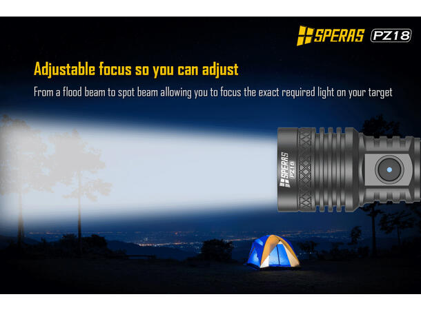 Nye PZ18 fra Speras er en multifunksjonell lommelykt spesielt designet for utendørsbruk meed zoom funksjon på lysstrålen.