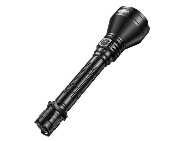 En lommelykt med kraftig lysstråle som når hele 1400 meter på maks styrke.