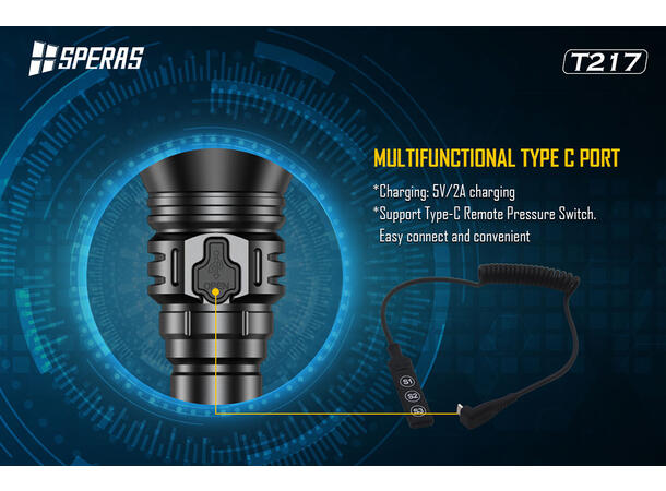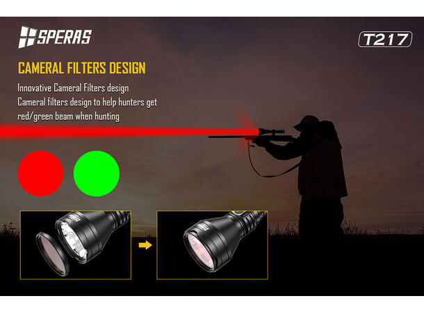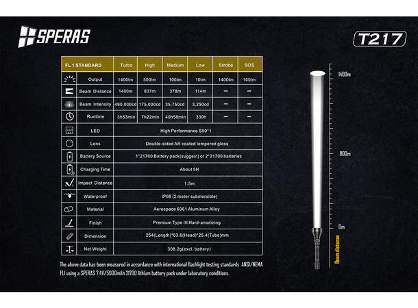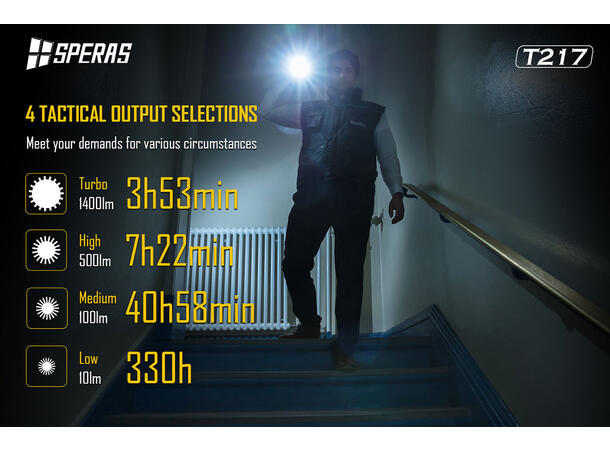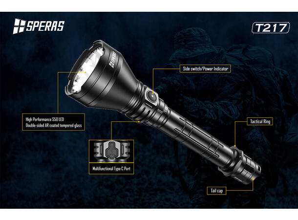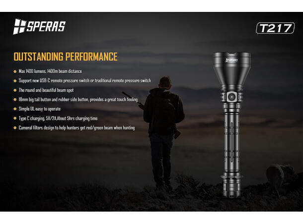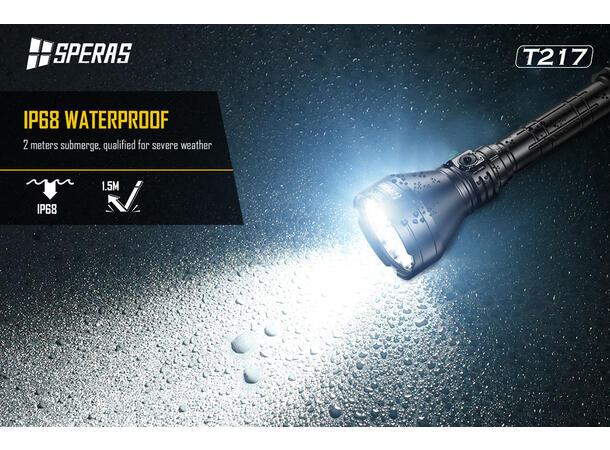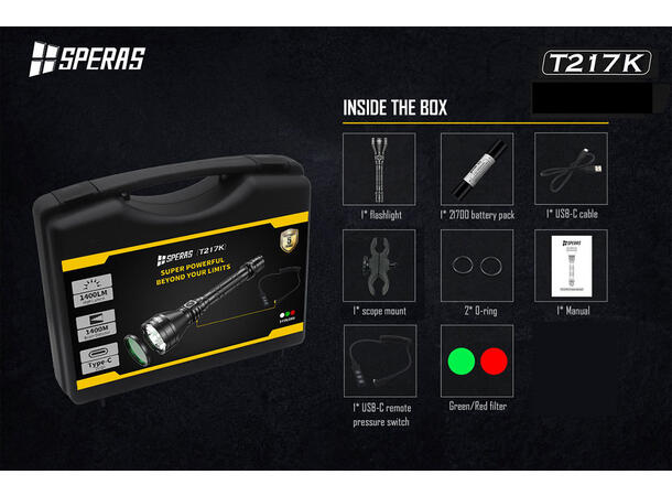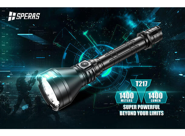 Speras T217 lommelykt i praktisk koffert 1400lm / 1400 meter kastelengde