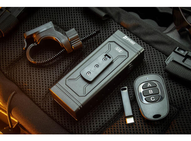 - I tillegg har den både strobefunksjon på 5000lm og SOS-funksjon på 500lm