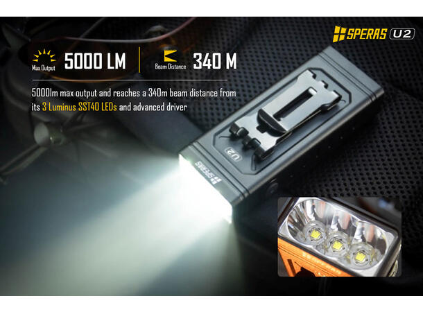 Speras U2 lykt for sykkel 5000lm / 320 meter kastelengde