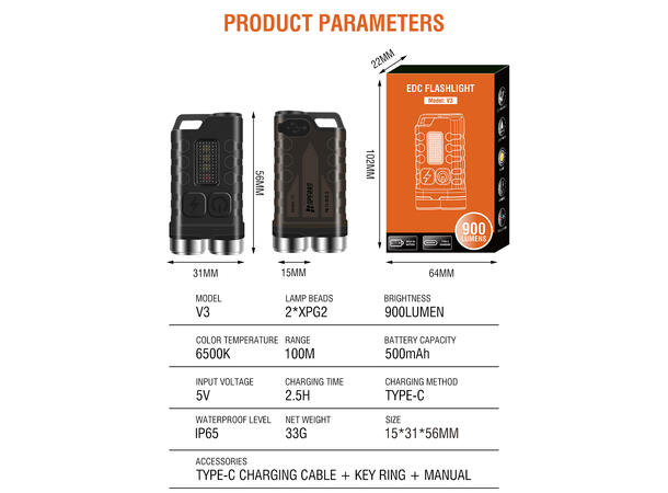Speras V3 lommelykt/varsellys 900lm / 100 meter kastelengde