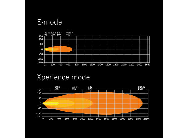 Opplev den nye XP Double Row Curved LED-rampen. Denne 50-tommers modellen har et lysbilde med 1075 faktiske lumen i E-modus og 30 000 i Xperience-modus. Dette betyr 100 % høyere lysstyrke sammenlignet med tidligere modeller. Rekkevidden på 300/1258 meter skaper høy synlighet fremover, og fargetemperaturen på 5700 kelvin gir skarpt og klart lys. Double Row Curved er enkel å installere takket være 2500 mm kabel og innebygd relé. Den er utrolig slitesterk og tåler vibrasjoner, salt, dårlige veier og hard slitasje. Den er IP-klassifisert IP68/IP69K og har et ny kraftig pulverlakk, som sikrer høy beskyttelse mot smuss og vann. Xperience DR er EMC-godkjent i henhold til ECE R10.