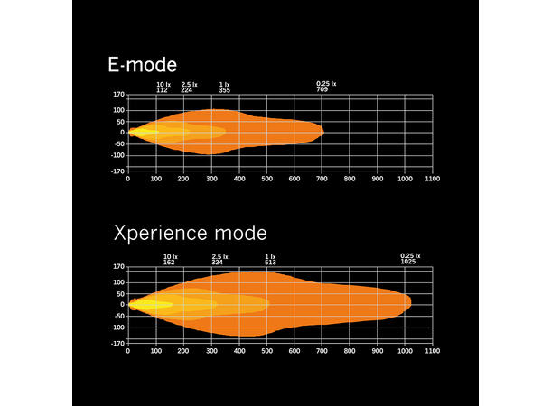 Opplev den nye XP Single Row Curved LED-rampen. Denne 50-tommers modellen har et lysbilde med 4 275 faktiske lumen i E-modus og 15 600 i Xperience-modus. Dette betyr 40 % høyere lysstyrke sammenlignet med tidligere modeller. Rekkevidden på 355/513 meter skaper høy synlighet fremover, og fargetemperaturen på 5700 kelvin gir skarpt og klart lys. Single Row Curved er enkel å installere takket være 2500 mm kabel og innebygd relé. Den er utrolig slitesterk og tåler vibrasjoner, salt, dårlige veier og hard slitasje. Den er IP-klassifisert IP68/IP69K og har et ny kraftig pulverlakk, som sikrer høy beskyttelse mot smuss og vann. Xperience SRC er EMC-godkjent i henhold til ECE R10.