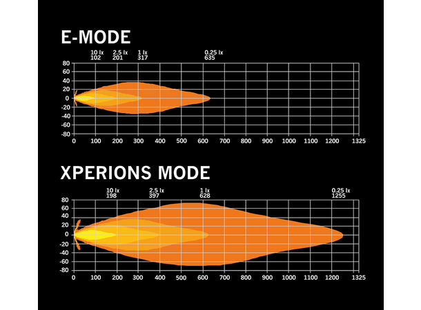 - 1 LUX @ m: Xperience mode; 628, E-mode; 317